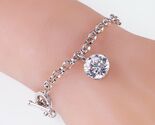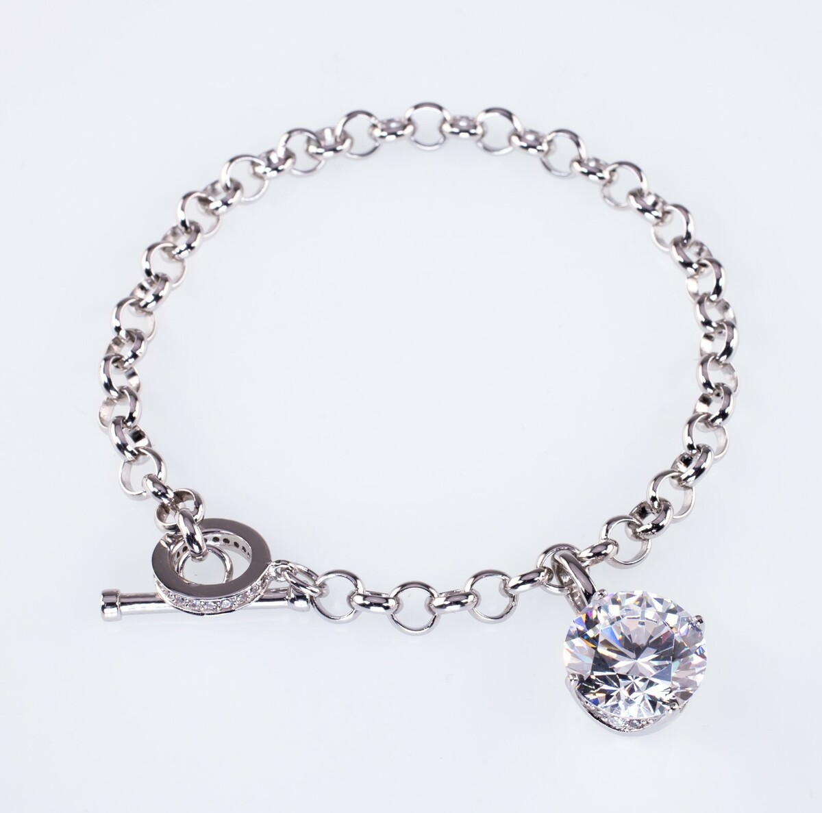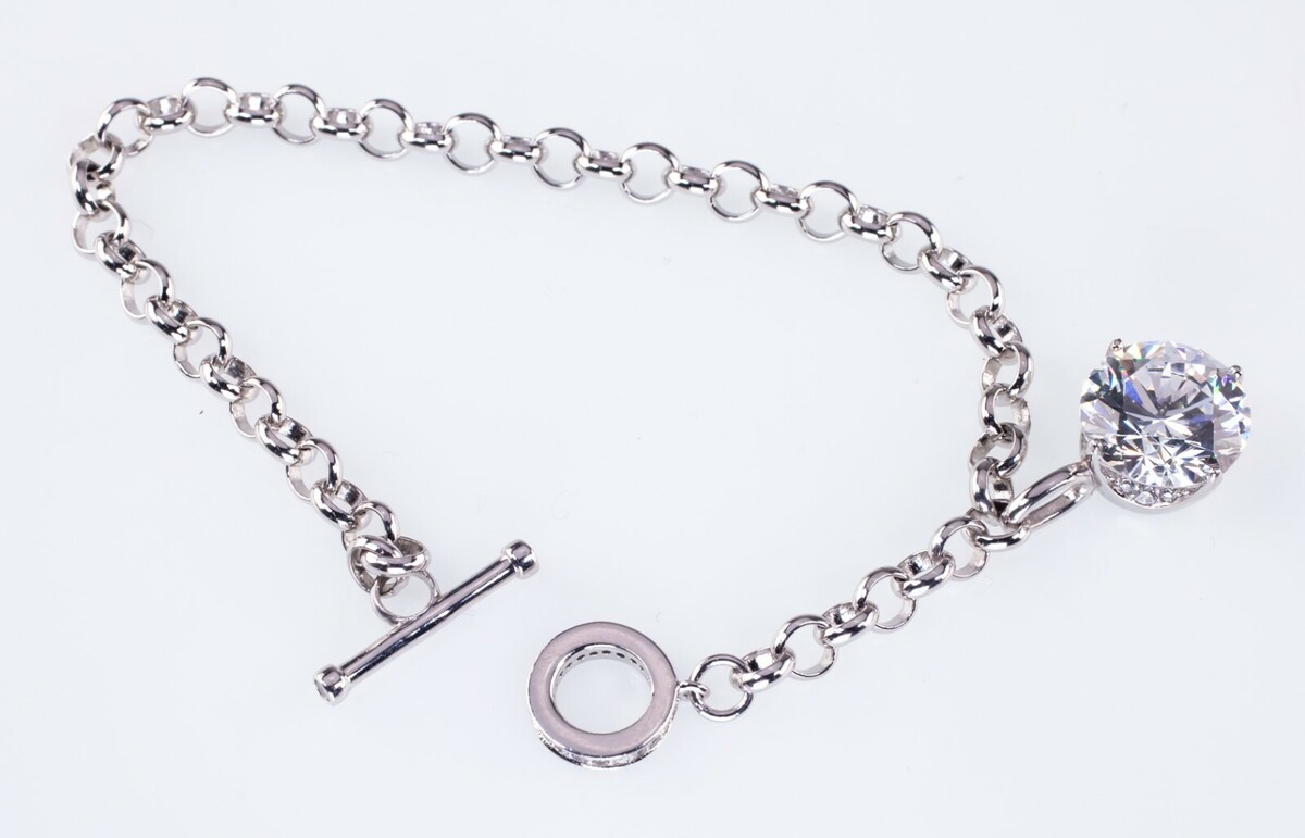 - Sterling Silver Large CZ Charm Bracelet w/ Toggle Clasp 7"