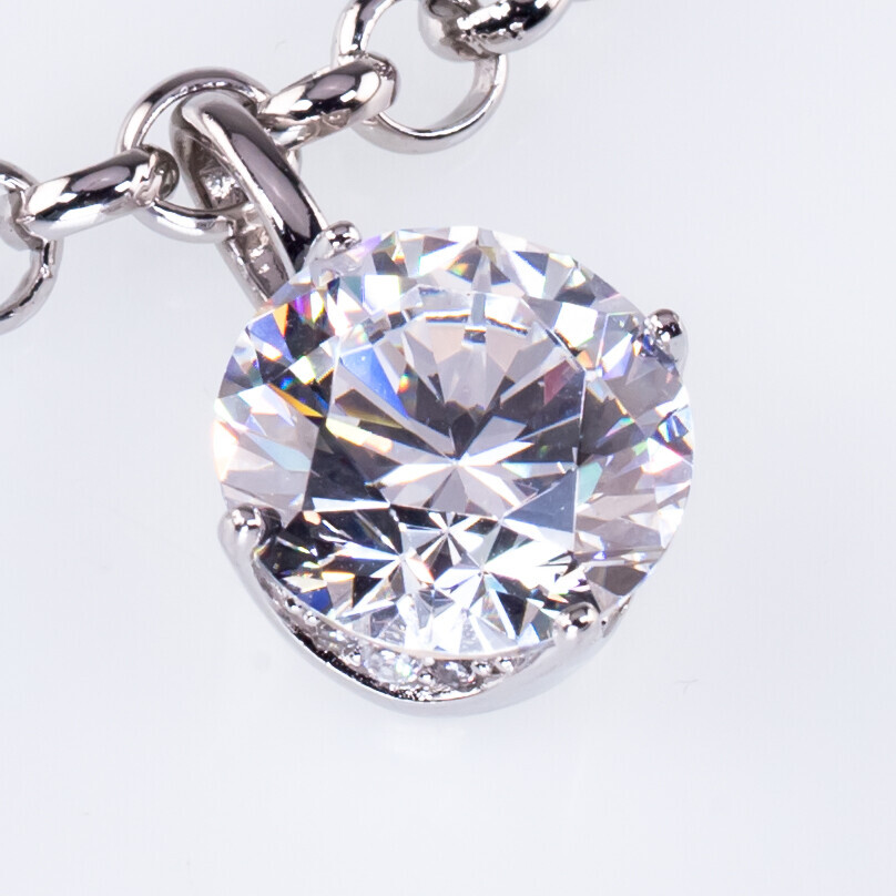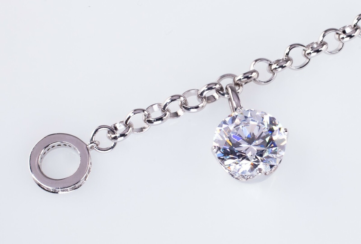 Features a Crown basket set 12 mm wide CZ Charm with accented CZ female end Clasp