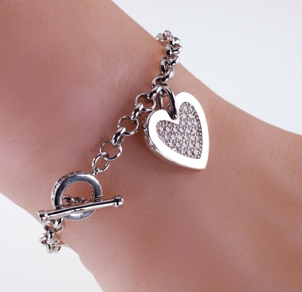 - Sterling Silver Large CZ Heart Charm Toggle Bracelet 6.75"