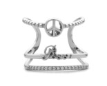 - Sterling Silver Large Triple Row CZ "Peace" and Peace Sign Ring