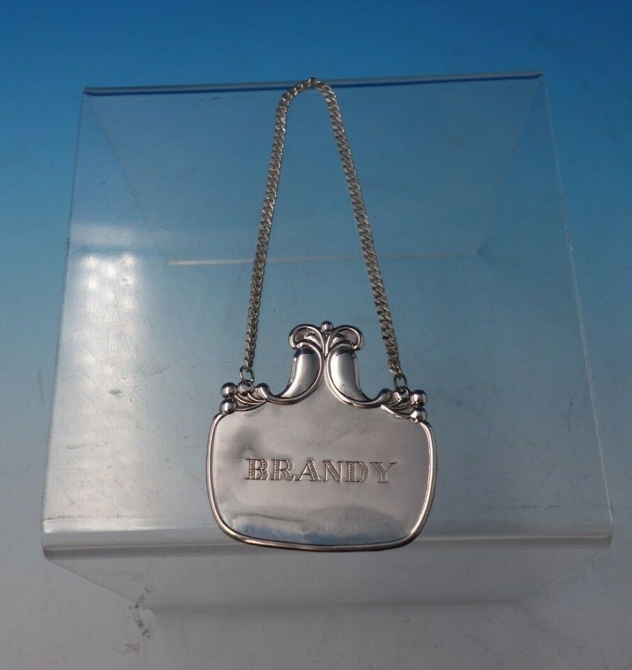 - Sterling Silver Liquor Label "Brandy" with Leaf and Berry Motif #353 (#5038)