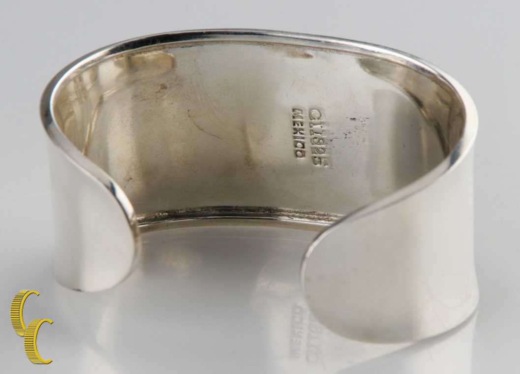Sterling Silver Mexico .925 Polished Cuff Bracelet Red Stone