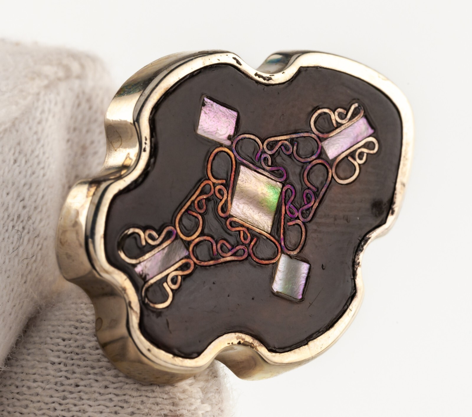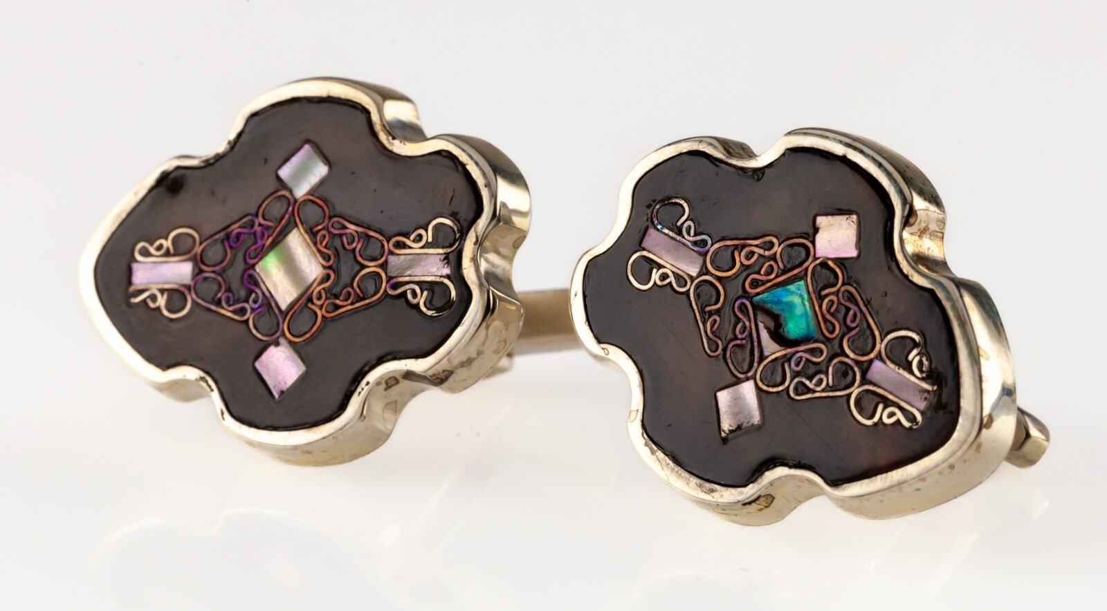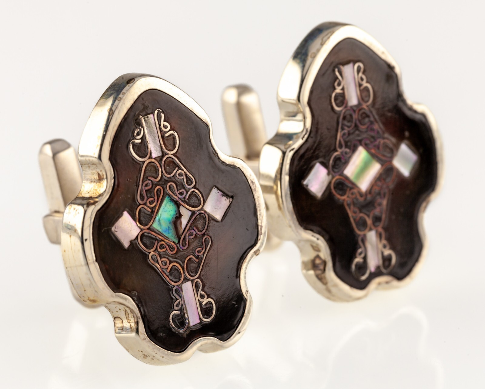 - Sterling Silver Mexico PGG Lapidary Inlay Cufflinks