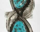 Sterling Silver Navajo Turquoise Long Ring with Leaf Accents Size 7.75