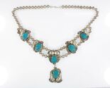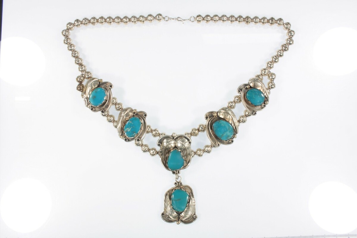 - Sterling Silver Navajo Turquoise Necklace With Leaf Details 18" 79.8g
