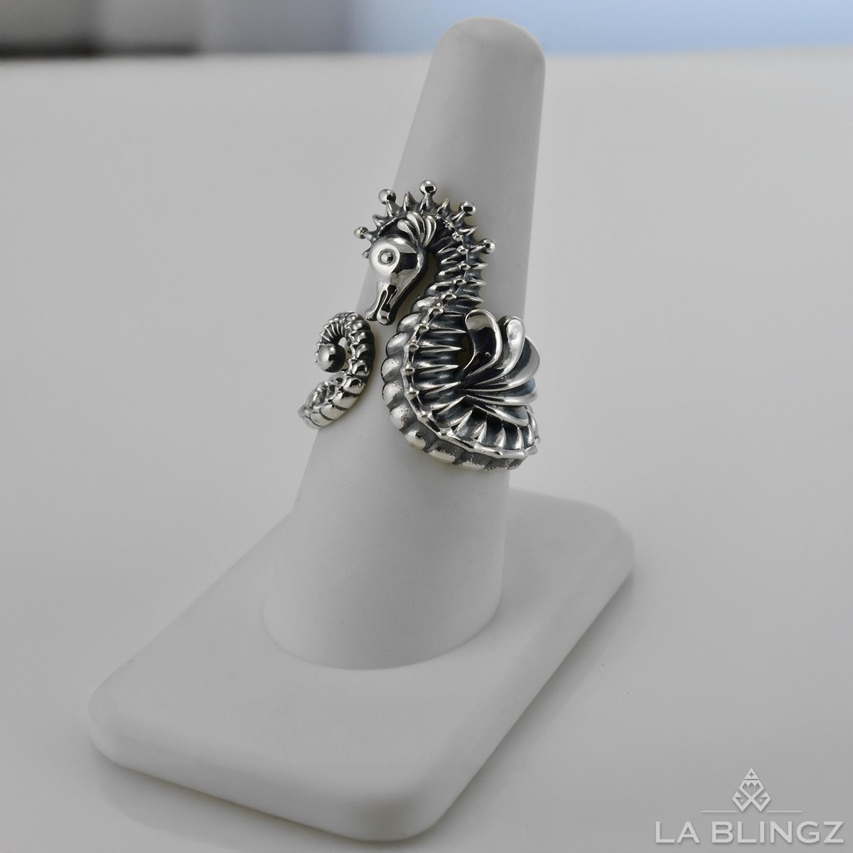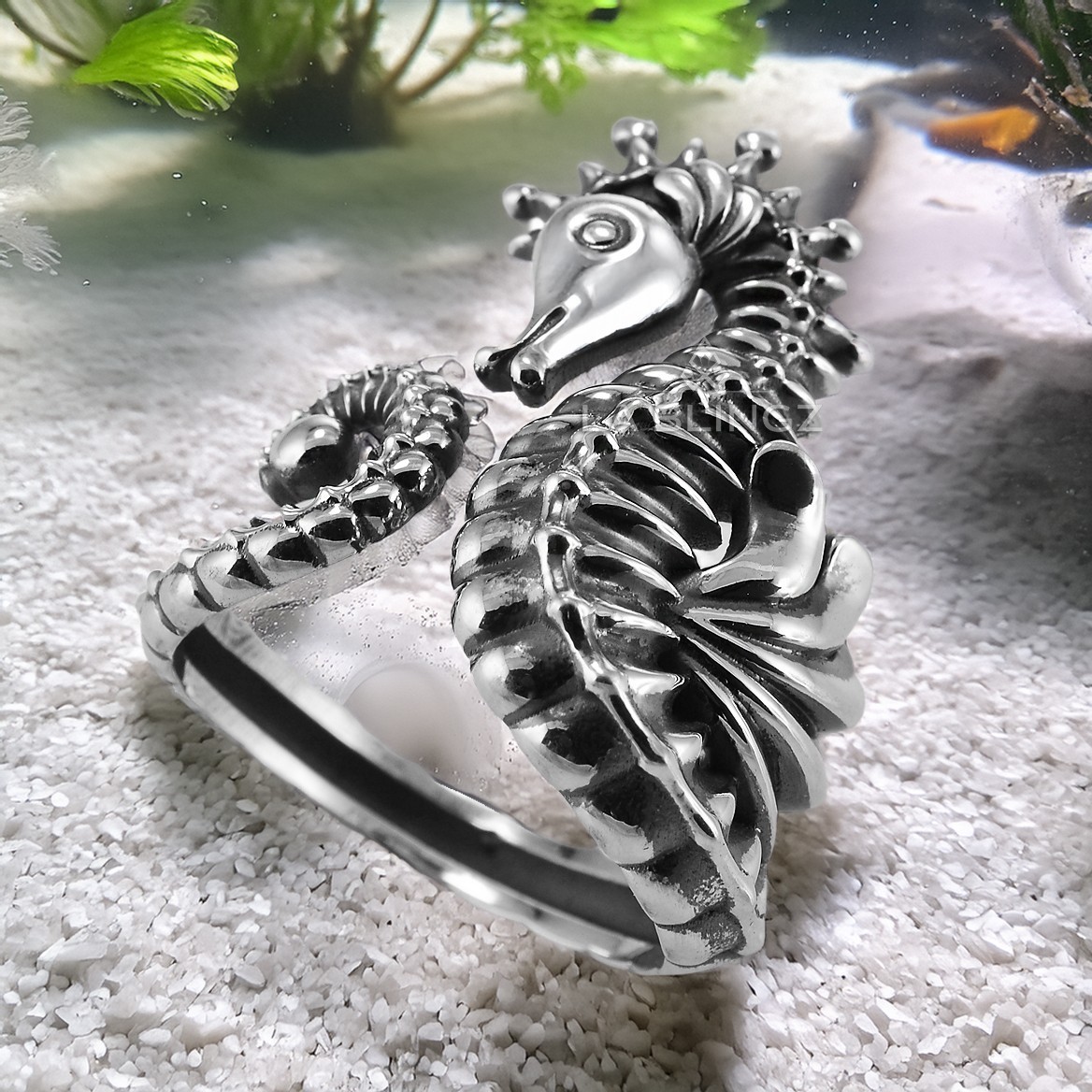 - Sterling Silver Oxidized Seahorse Wrap Statement Ring for Women Ocean Jewelry