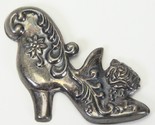 - Sterling Silver Repousse High Heel Shoe Pin Brooch Victorian Art 2.25" x 1.8"