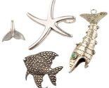 - STERLING SILVER SEA CREATURES PENDANTS & BROOCH, STARFISH, WHALE TAIL, TWO FISH