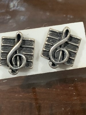 Sterling Silver TINY 8x7mm Treble Clef on Staff Music Stud Small Studs EARRINGS. Condition is Pre-owned. Shipped with USPS Ground Advantage.