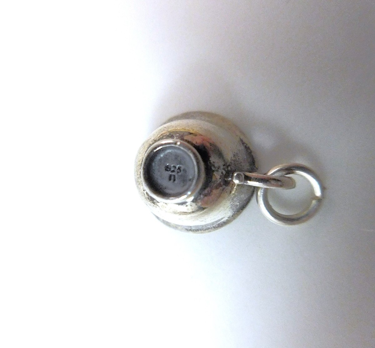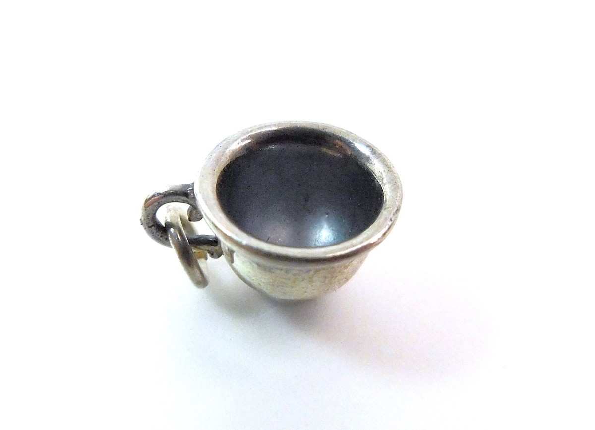 Small tea cup bracelet or pendant charm stamped .925 and with a maker's mark of a small initial "n" on the reverse side. Very nicely detailed and in good pre-owned condition with light tarnish. I have many charms to list so view the photos closely for condition and size.