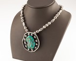- Sterling Silver Tumbled Navajo Turquoise Handmade Pendant w/ Silver Bead Chain