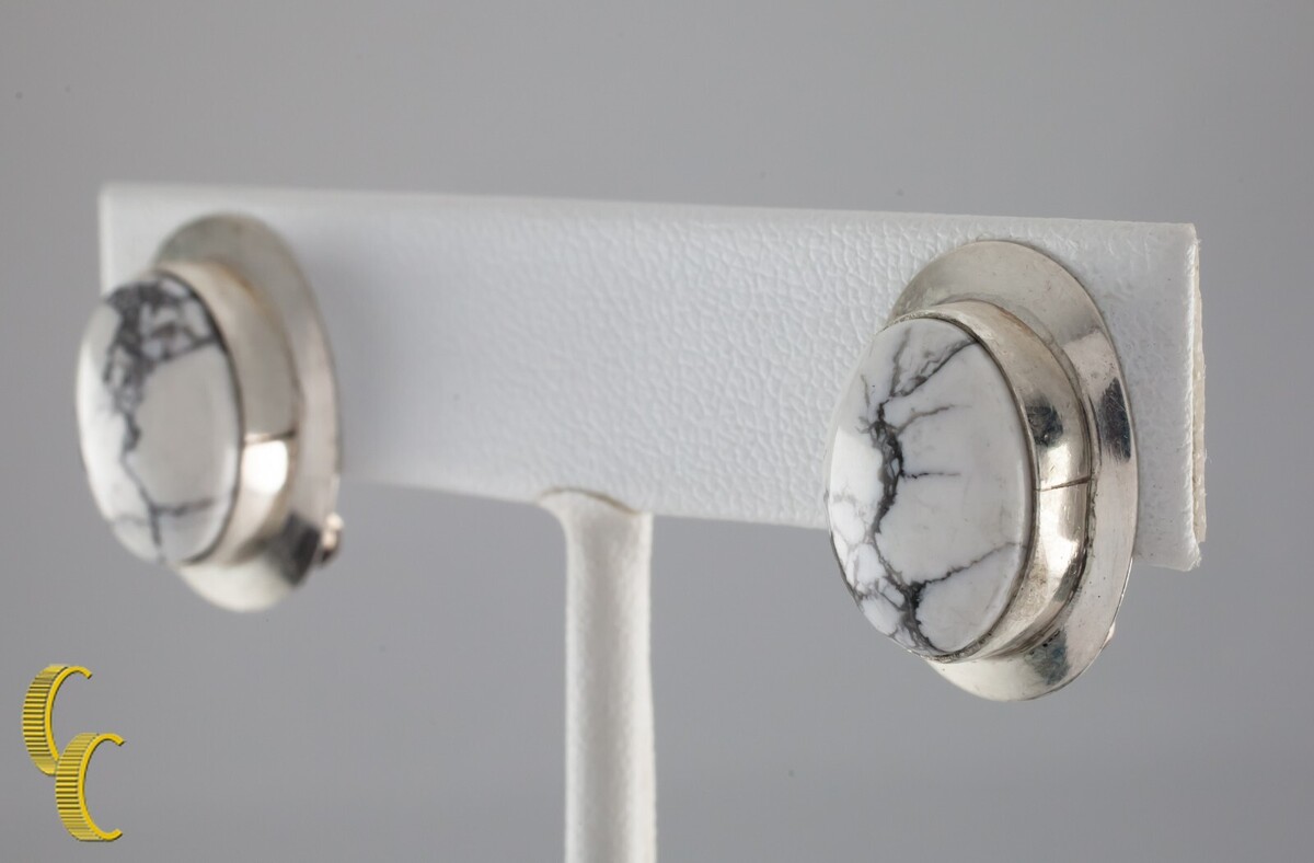 - Sterling Silver White Turquoise Cabochon Clip-On Earrings Gorgeous