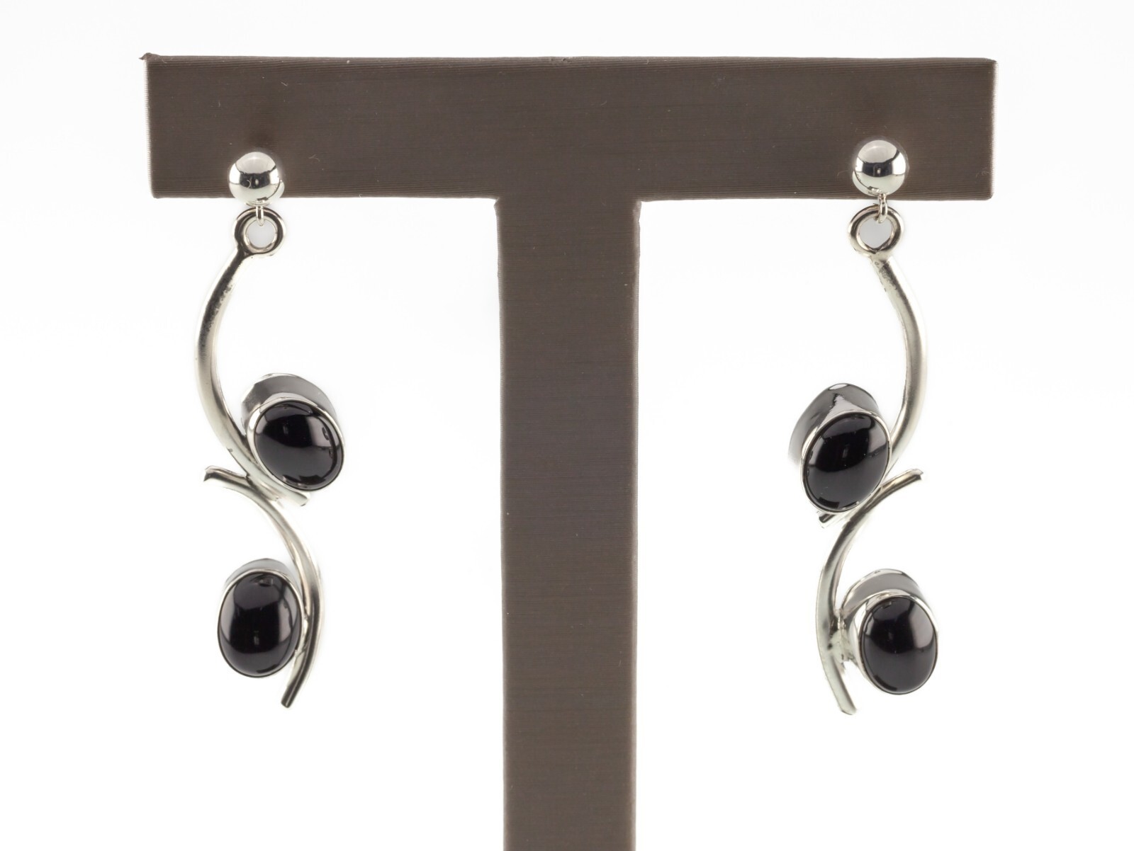 Sterling Silver Drop Onyx Earrings
