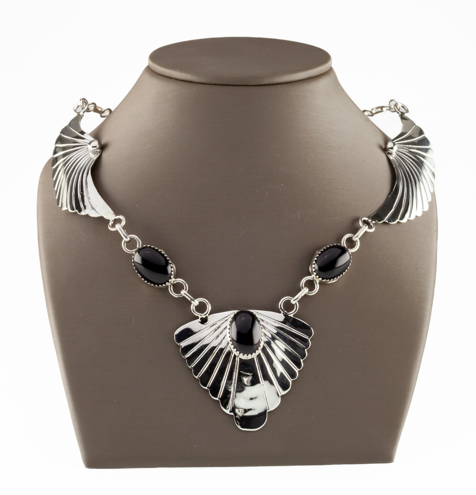 Includes Necklace with Wing Elements and Bezel-Set Onyx Cabochons