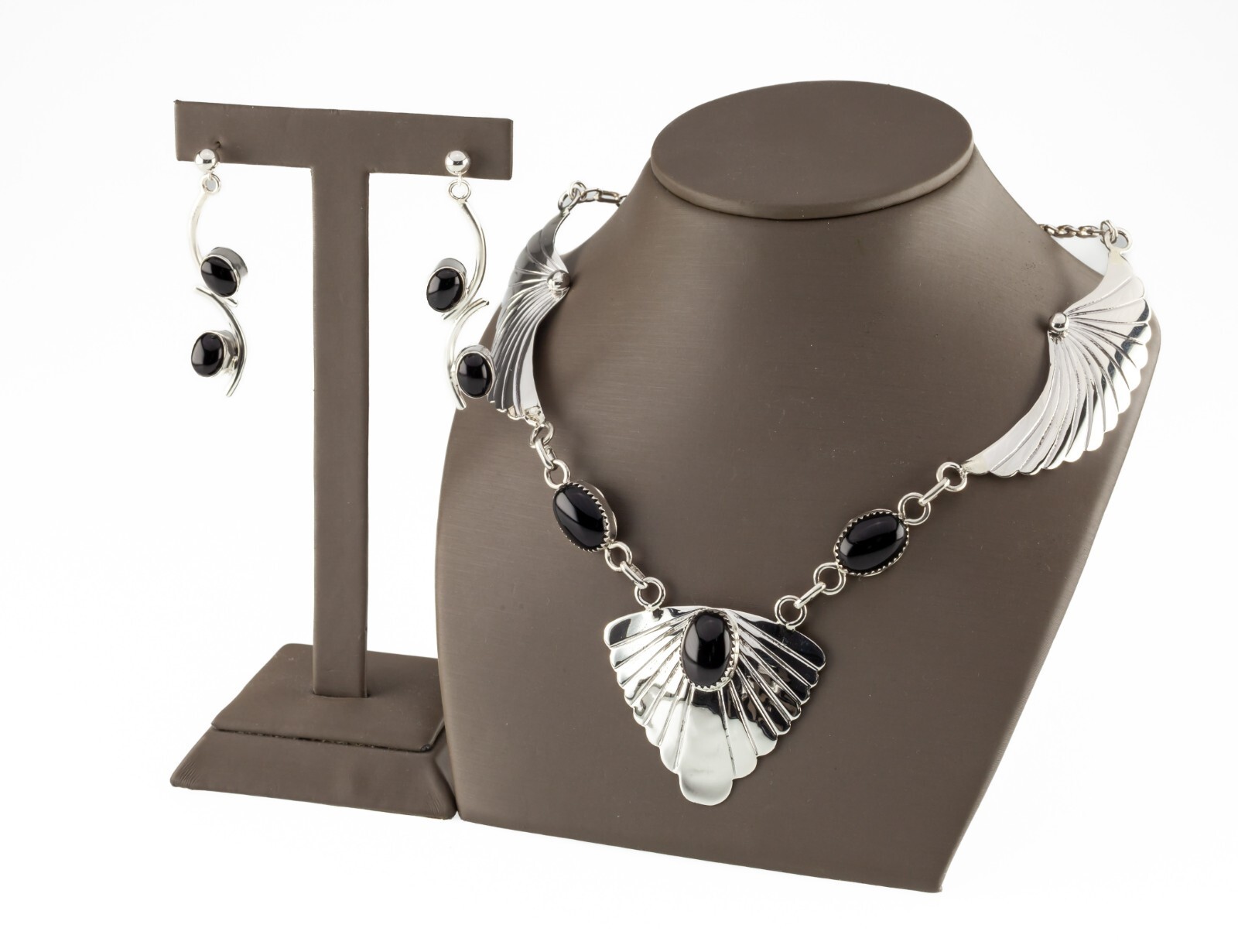 - Sterling Silver Wing Motif Onyx Necklace and Earring Set by Pete Morgan