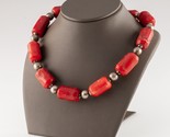 - Sterling Silver and Coral Beaded Necklace Heavy Gorgeous! 18.5"