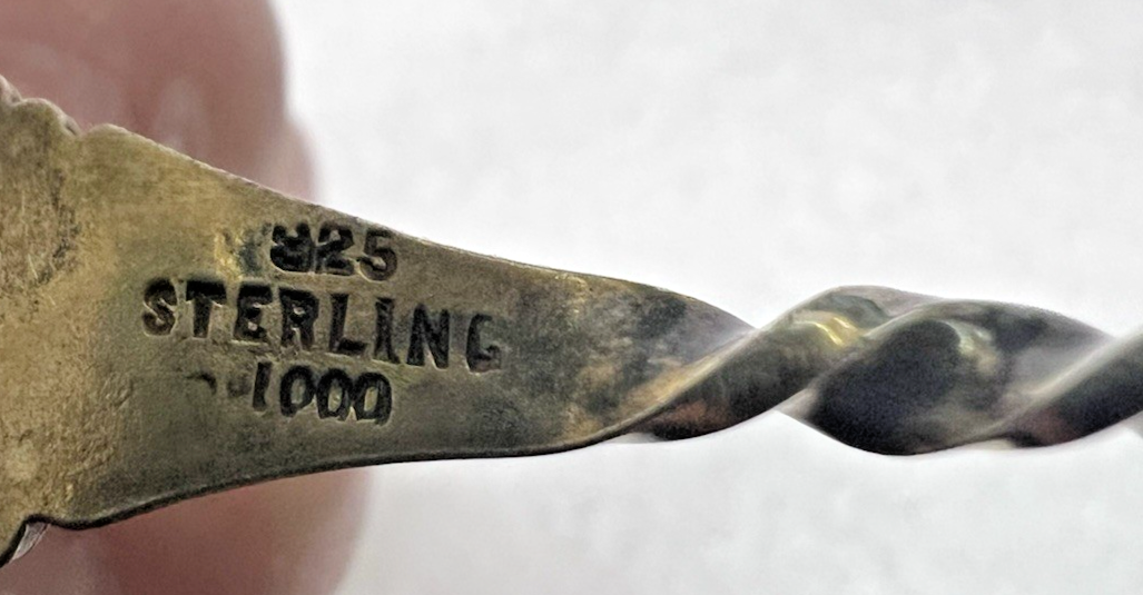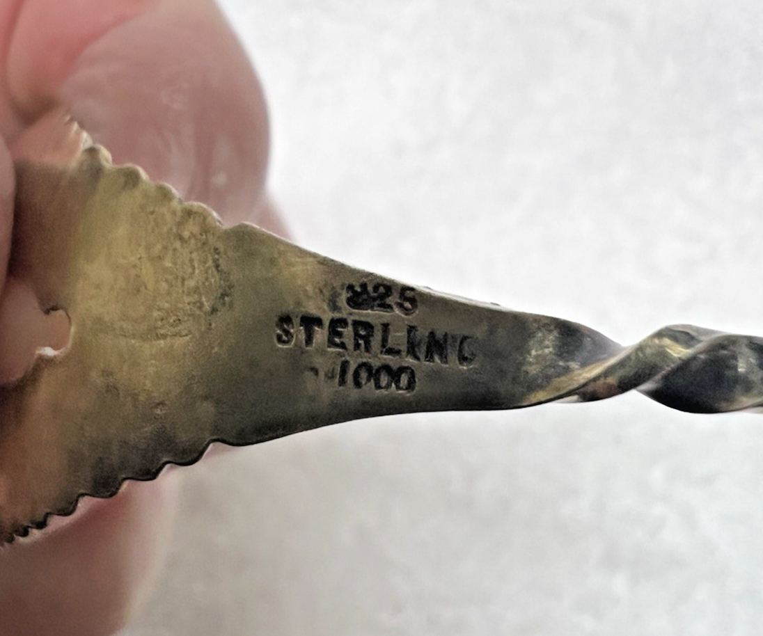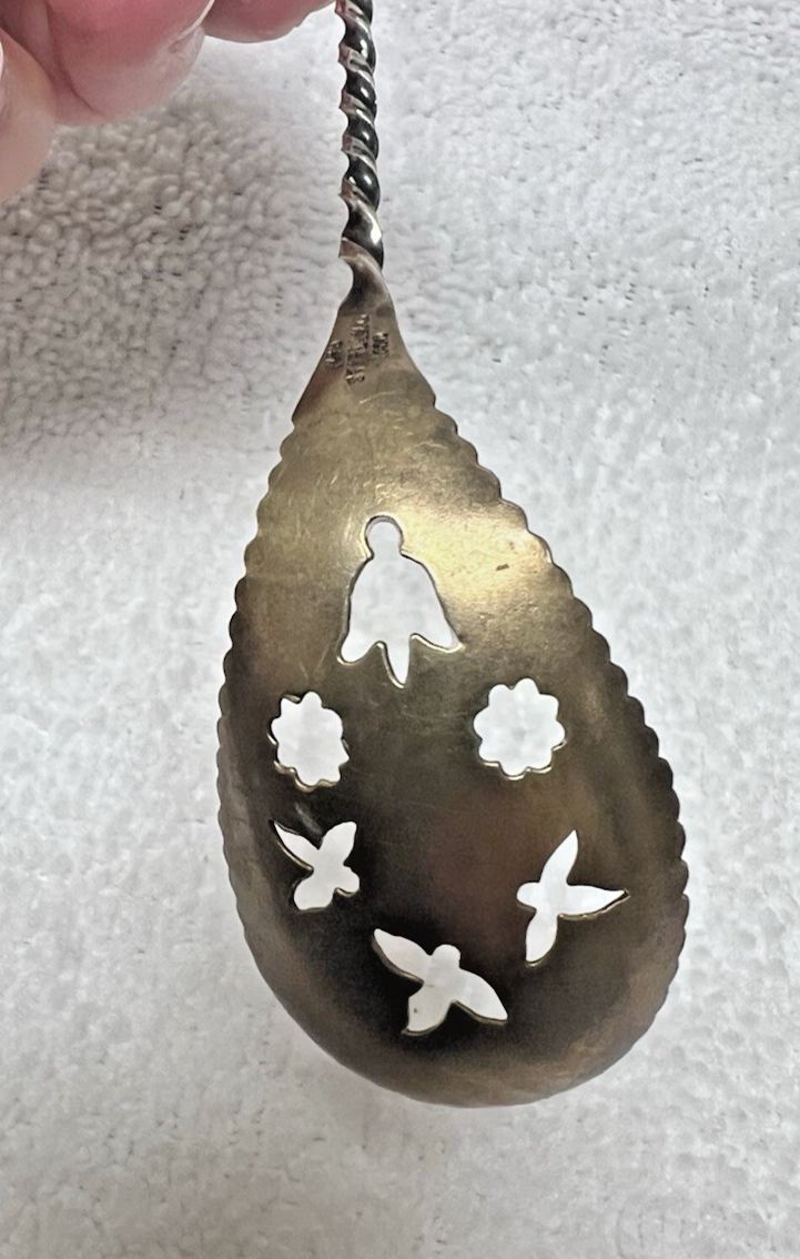 - Sterling Silver w Gold Wash Olive Spoon Pierced Floral Bowl Twisted Handle Spear