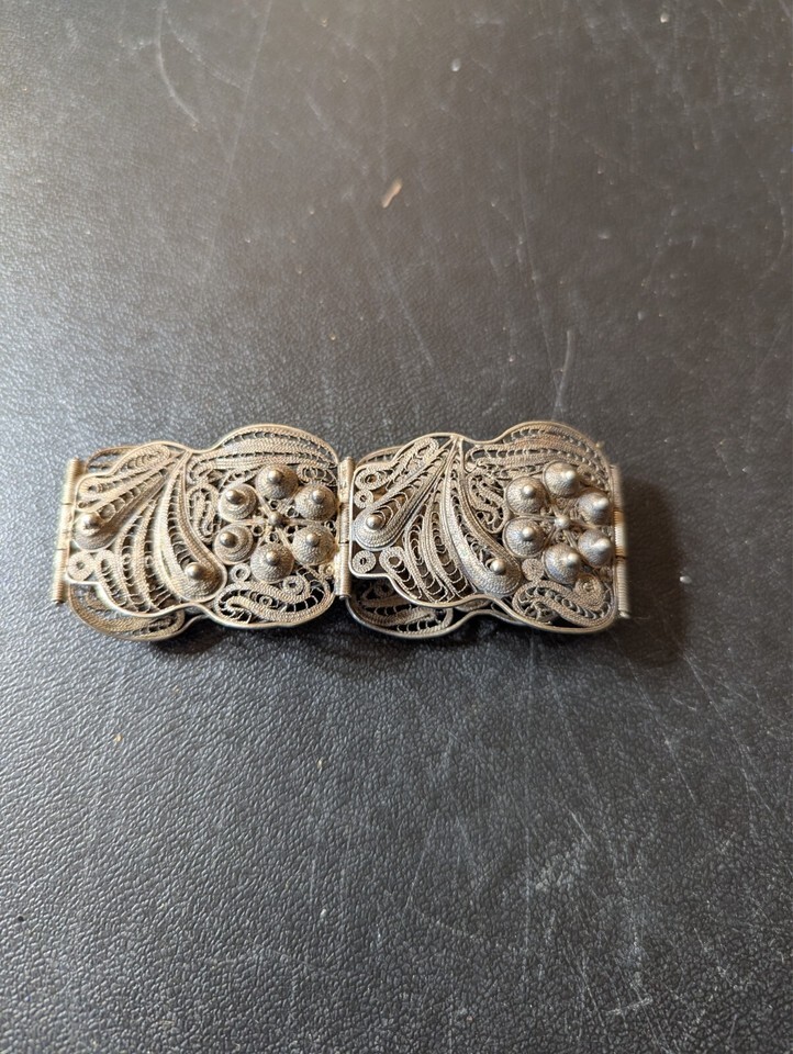Crafted with precision, this sterling silver Philigree cuff bracelet showcases an elegant round shape and a secure push lock closure. Its intricate design, a testament to the artistry of Mexican craftsmanship, makes it a distinctive piece for any jewelry enthusiast. The bracelet's silver hue and 925 metal purity ensure a lustrous finish that complements any attire, making it a versatile addition to your collection.