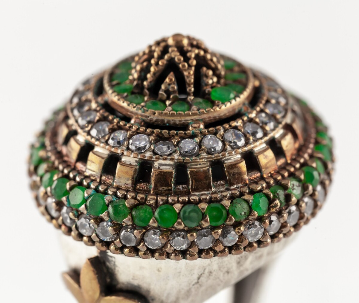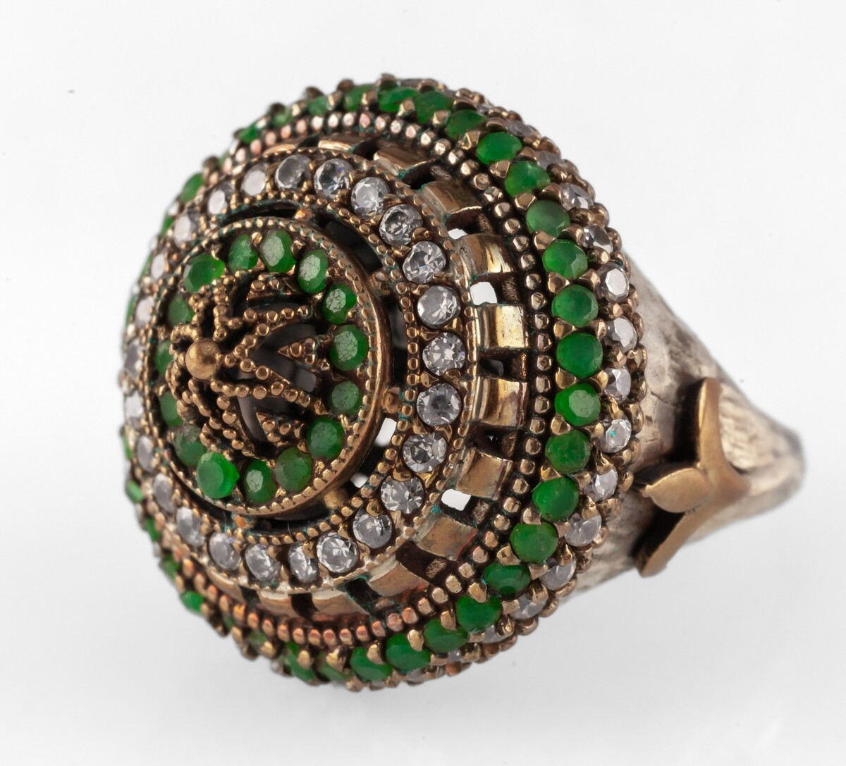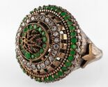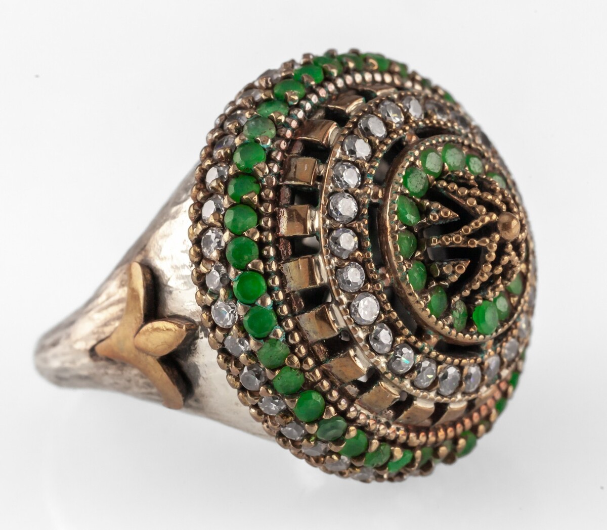 Türkischer Ottomon-Smaragd-/Topas-Ring aus Sterlingsilber mit Bronzeakzenten, Große 8