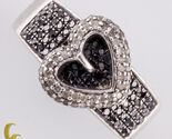 - Sterlingsilber Schwarzer Und Weißer Diamant Herzförmiger Bandring Größe 8,75