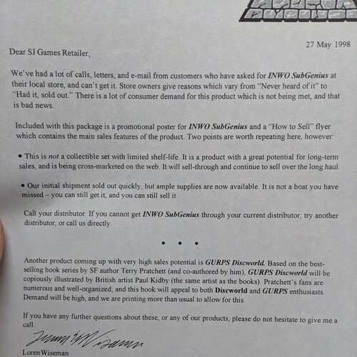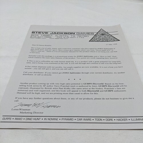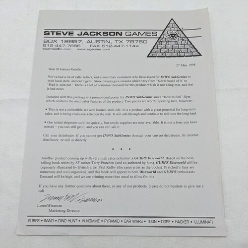 Steve Jackson Games May27 1998 Retailer INWO SubGenius Marketing Director Letter