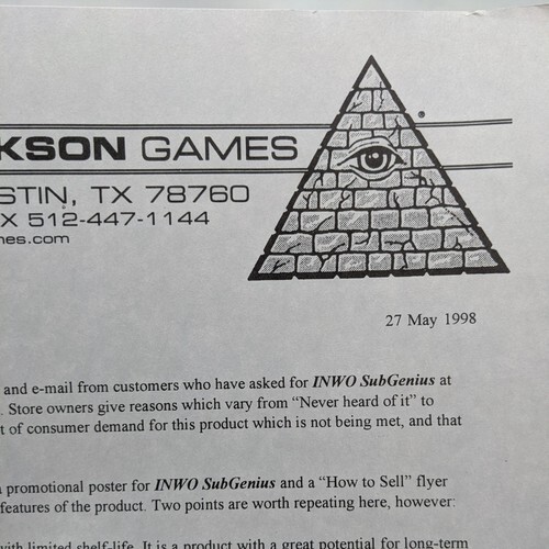 - Steve Jackson Games May27 1998 Retailer INWO SubGenius Marketing Director Letter