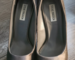 These Steve Madden Grey Peeptoe Playy-R Rhinestone Beaded Stiletto Heels in size 9.5M are an elegant addition to any woman's shoe collection. The ultra-high stiletto heel features eye-catching studded and rhinestone accents that add glamour to any outfit. The slip-on style and peep toe design provide easy wear for special occasions or nights out. Crafted with faux silk upper material and silk outsole, these heels combine comfort with style. Perfect for weddings, parties, or dressy events - pair them with a formal dress or dress down with jeans for versatile styling options. These statement heels are designed to make you stand out. 5.5" heels.