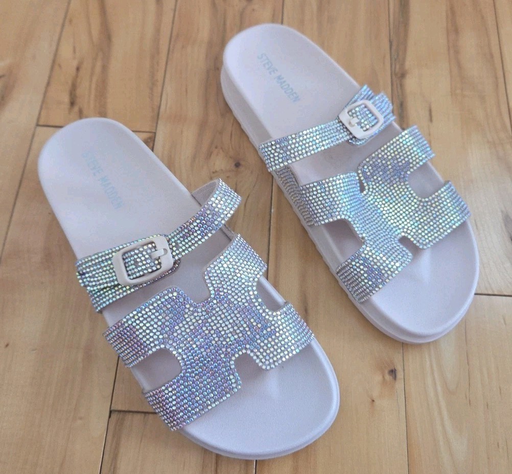 - Steve Madden Youth J Spiritr Slide Sandal Sparkle Rhinestone Blush Pink Sz 3 New