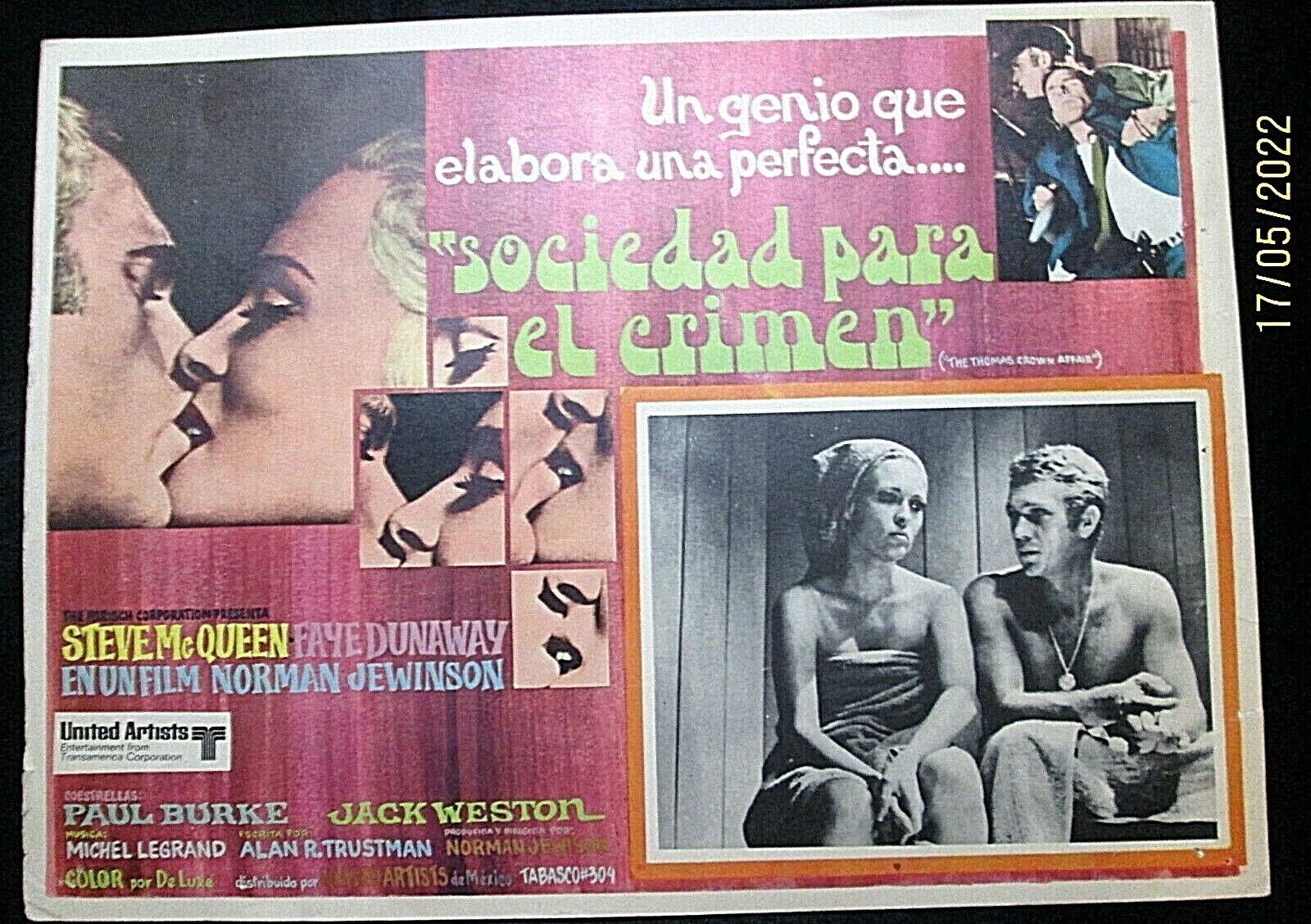 STEVE McQUEEN,FAYE DUNAWAY (THOMAS CROWN AFFAIR) ORIG,RARE VER,LOBBY CARD LARGE SIZE (11X17) EURO SPANISH VERSION