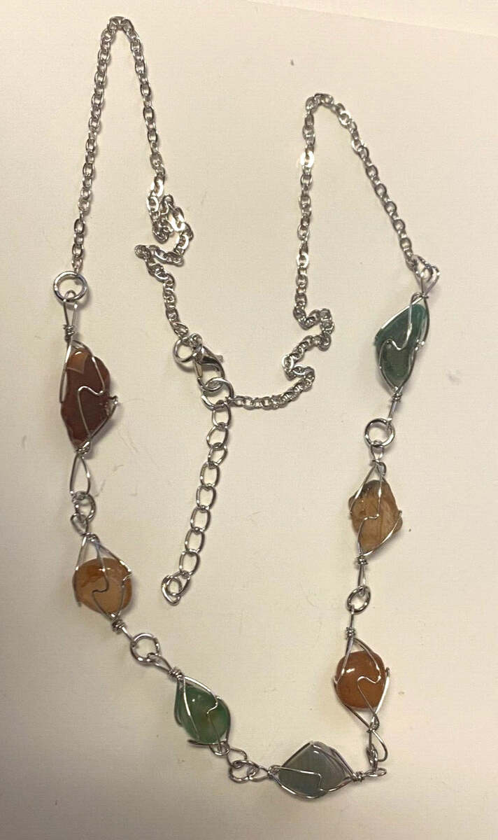 Stone Silver Tone 22" Necklace, New from Bethlehem #1