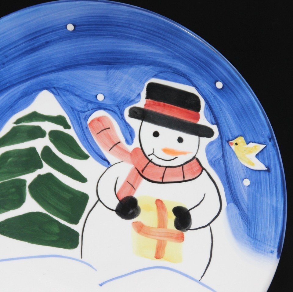 Stoneware Xmas Snowman Blue Dinner Plates 11"