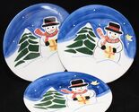 - Stoneware Christmas Snowman Blue Dinner Plates 11" Lot of 3 Xmas