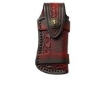 This durable leather knife sheath is the perfect way to safely carry your blade. Crafted from high-quality leather, it features a simple yet functional design that securely holds your folding knife in place. The sheath fits a variety of blade styles and sizes thanks to its adjustable strap closure. A leather loop allows easy attachment to belts, packs, or pockets for on-the-go accessibility. Its compact size keeps your knife close at hand whether you're camping, hiking, or working outdoors. The leather construction develops a beautiful patina over time and protects your knife edge from accidental nicks and scratches when not in use. This versatile sheath is a must-have accessory for any outdoorsman looking to keep their cutting tool safely stowed and within easy reach.
