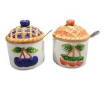 Strawberry Pie & Blueberry Pie Jam Jelly Condiment Serving Jars Lids & Spoons
