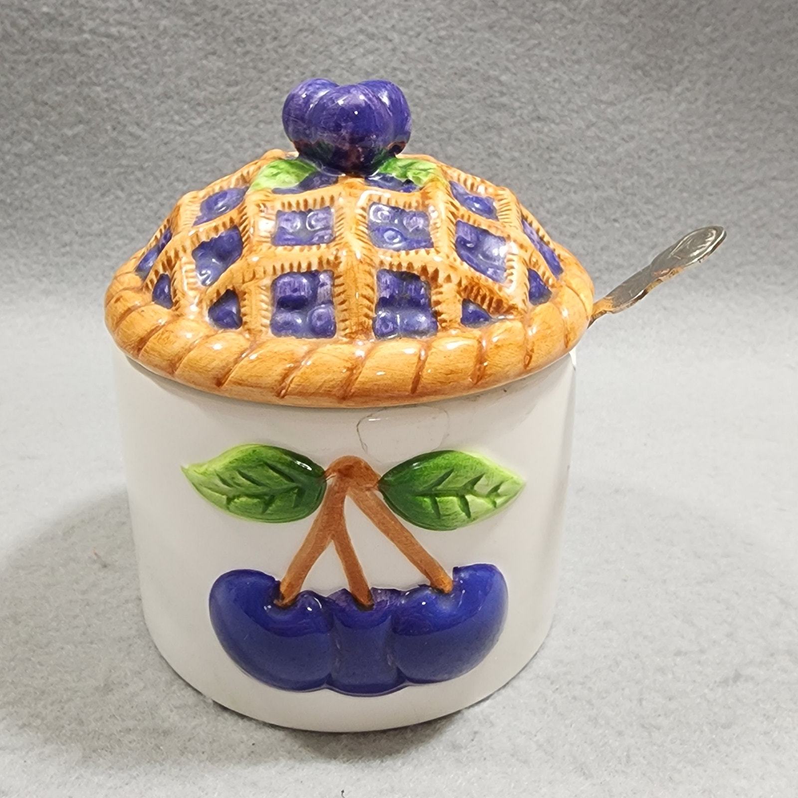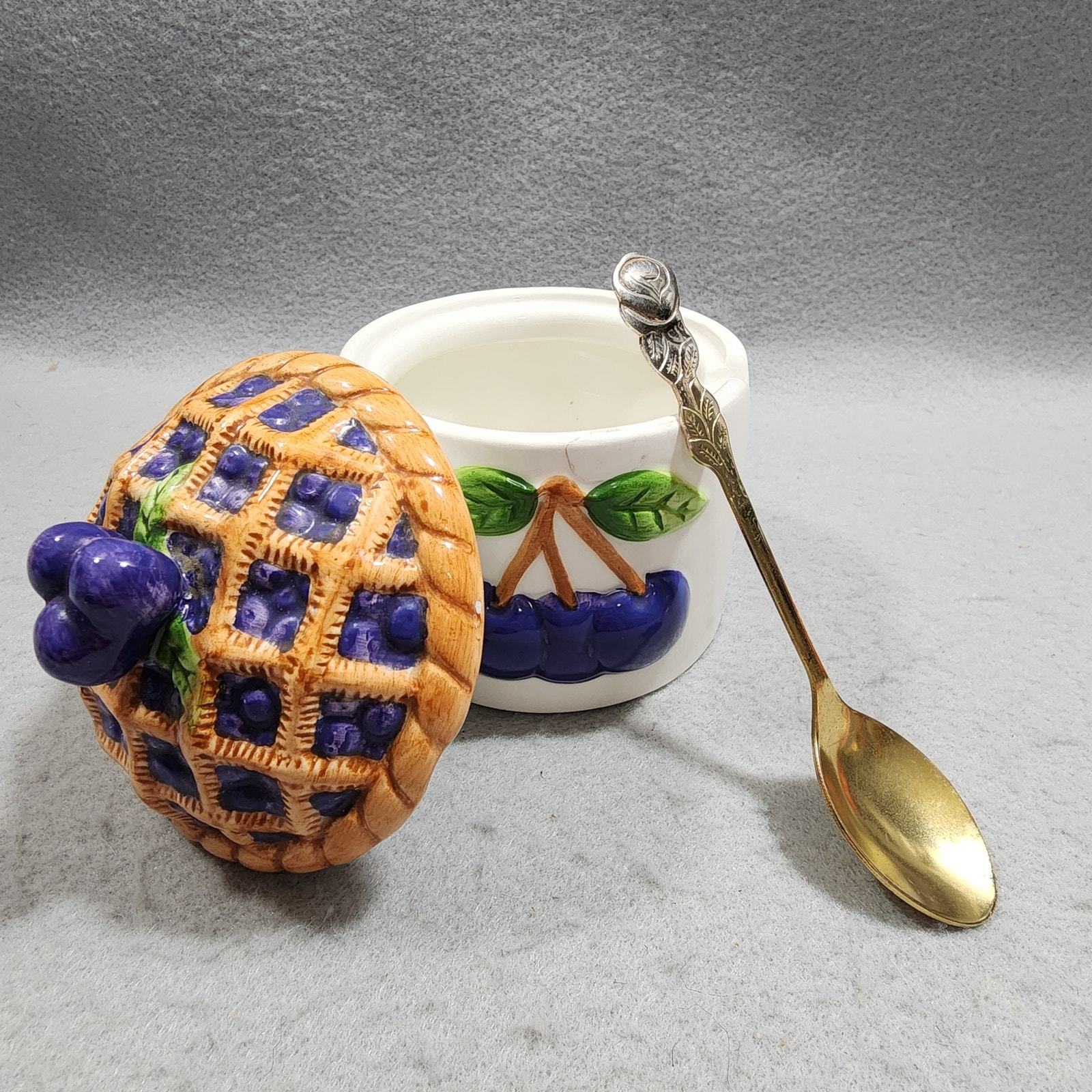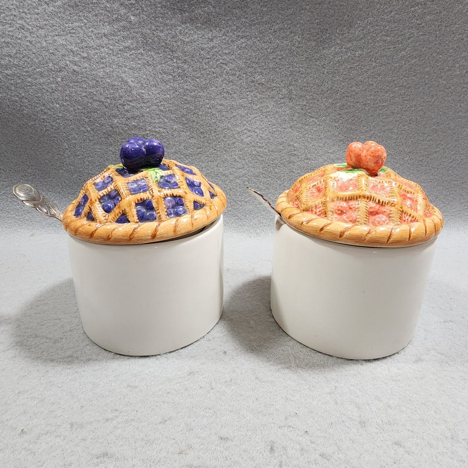 - Strawberry Pie & Blueberry Pie Jam Jelly Condiment Serving Jars Lids & Spoons