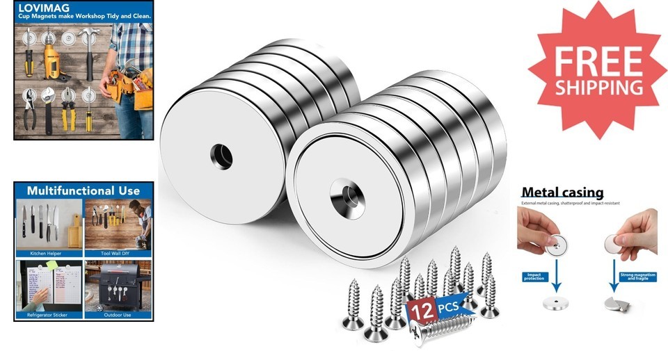 - Strong Neodymium Cup Magnets - Rust-Resistant, Heavy Duty, Waterproof - 12 Count