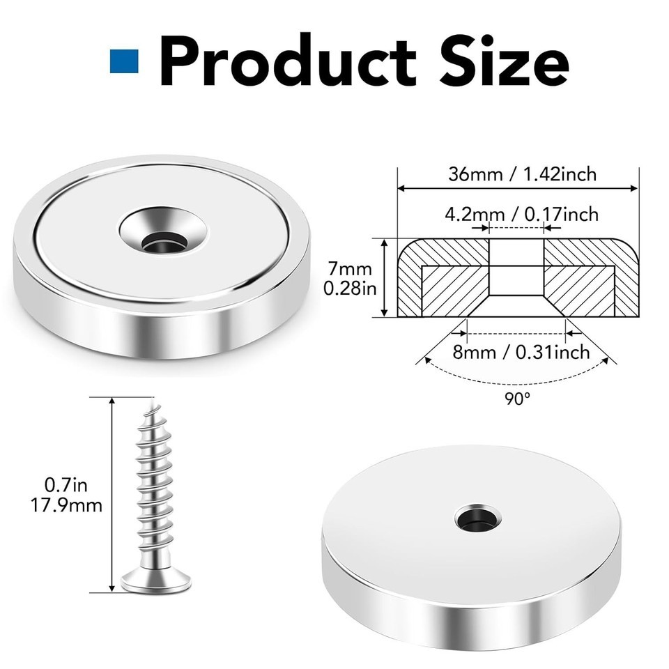 Equipped with a heavy-duty countersunk hole and supplied with twelve free screws, these versatile magnets are perfect for home, business, and educational projects alike. Use them for holding, lifting, fishing, closing, retrieving, or as components in blackboards and refrigerators, enhancing your projects with their extensive capabilities.