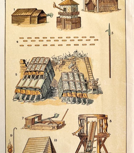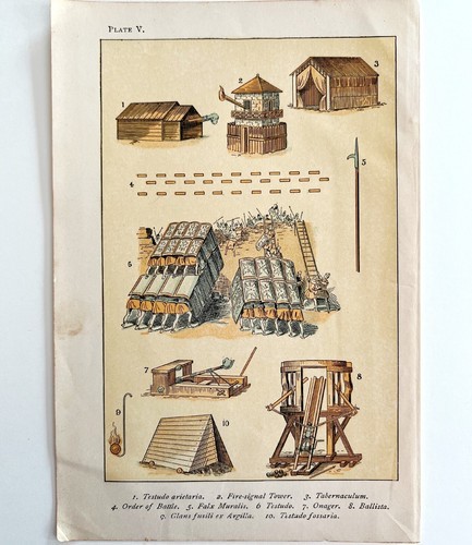 - Structures Of Military Camp 1886 Victorian Lithograph Caesar's Gallic War DWP4B