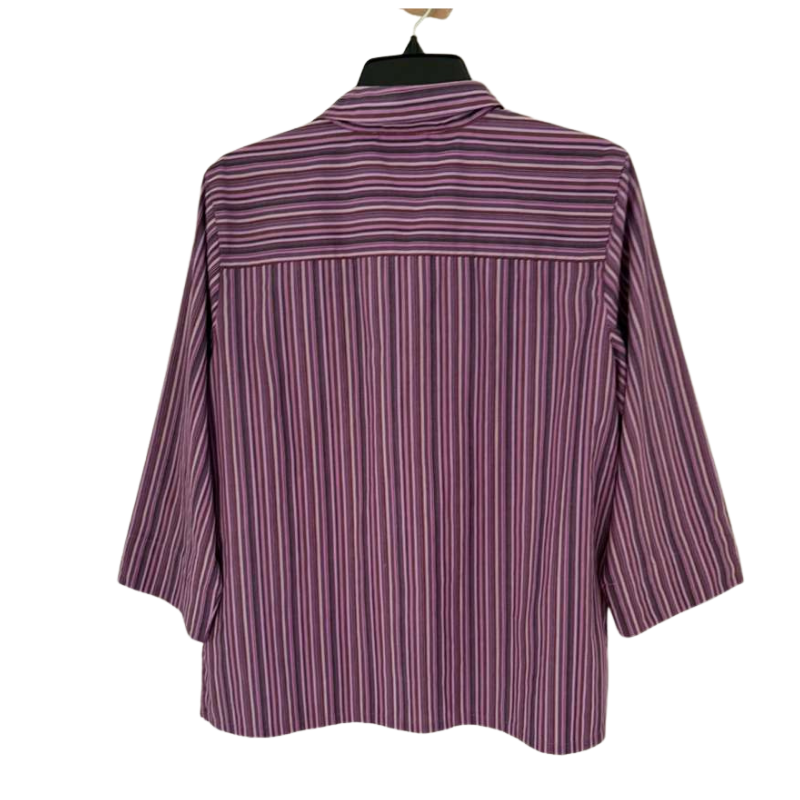 - Studio Works Women's 3/4 Sleeve Button-Up Striped Shirt Purple Size M