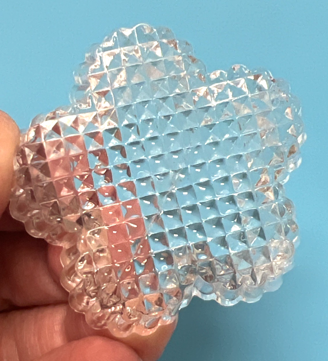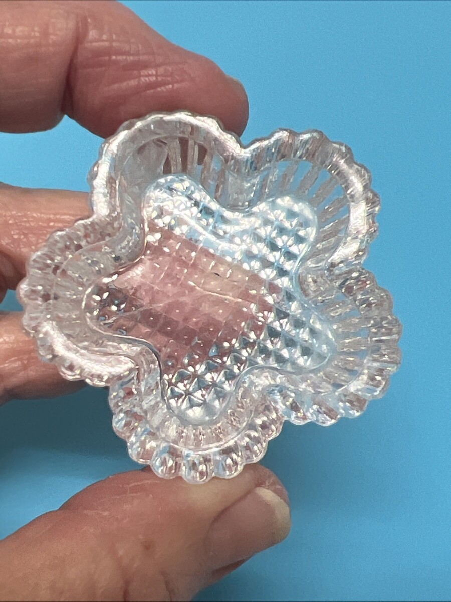 Stunning Flower Shaped Ruffled Edge Grid Base Clear Glass open Salt Dip Tiny