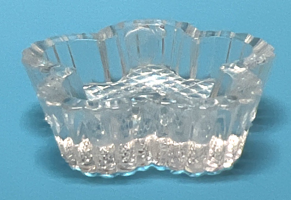 - Stunning Flower Shaped Ruffled Edge Grid Base Clear Glass open Salt Dip Tiny