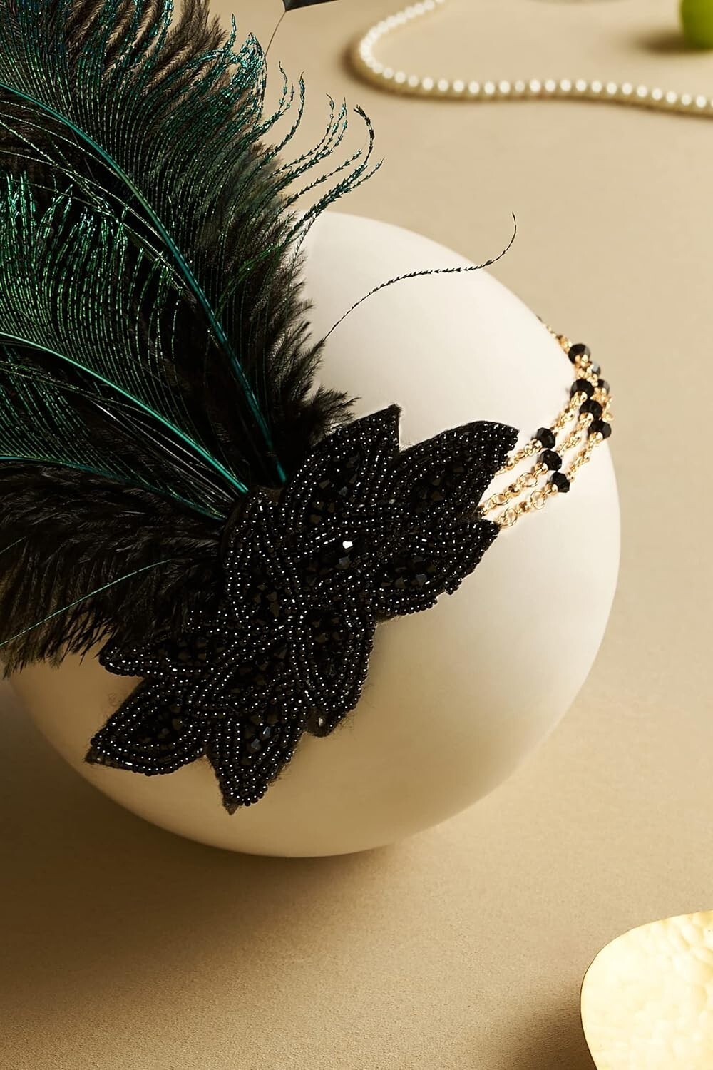- Stunning Roaring 20s Feather Headband with Adjustable Fit for Special Occasions