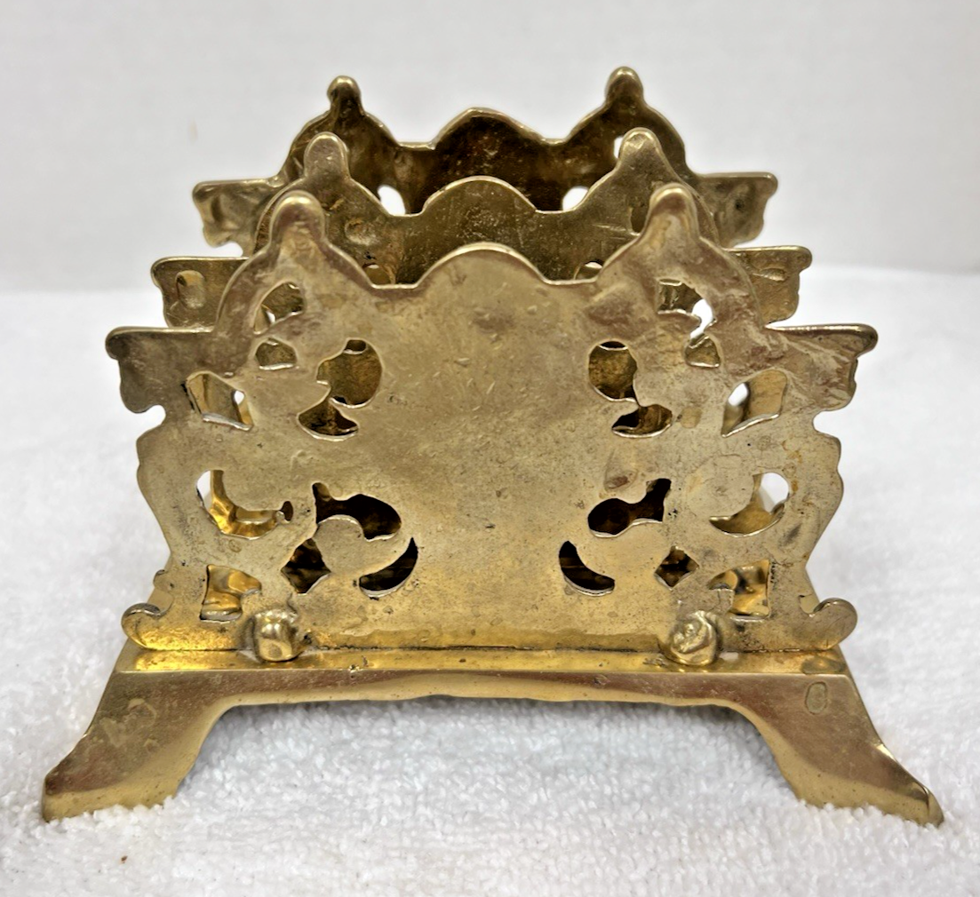 - Stunning Solid Brass Letter Stand w Shell Clip Holder Floral Scroll Design