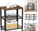 - Sturdy 3-Tier Kitchen Cart on Wheels - Stylish Space-Saver in Rustic Brown