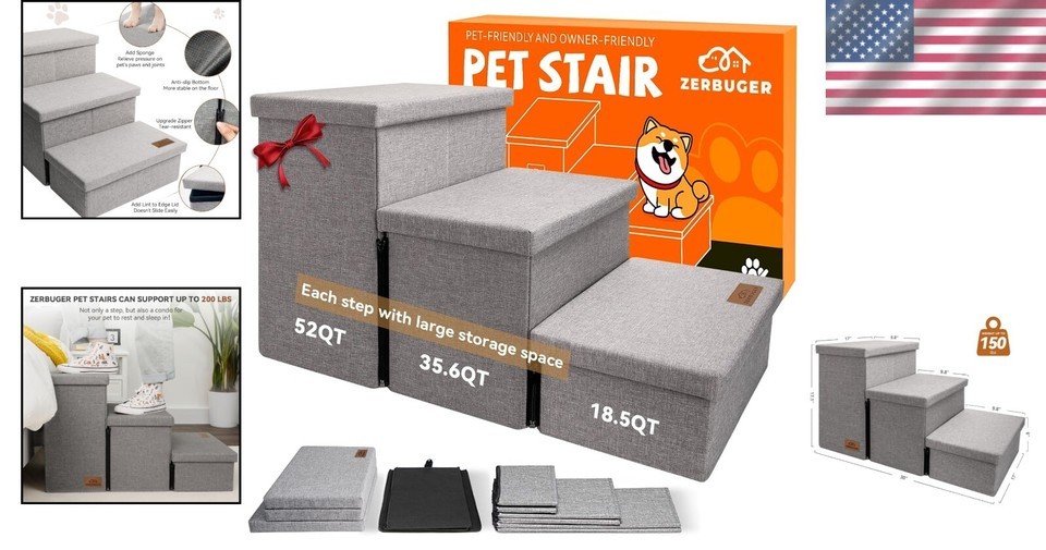 - Sturdy Folding Pet Steps for Dogs & Cats - 200 lbs Capacity with Storage