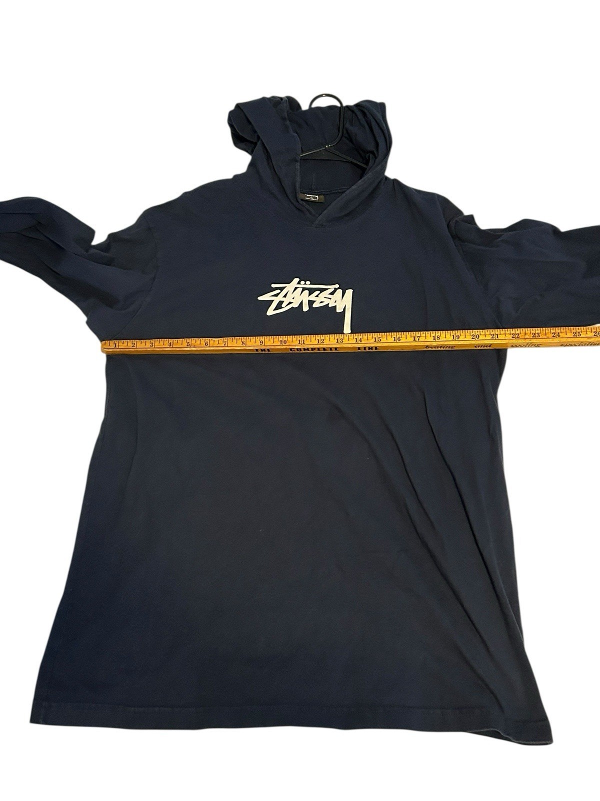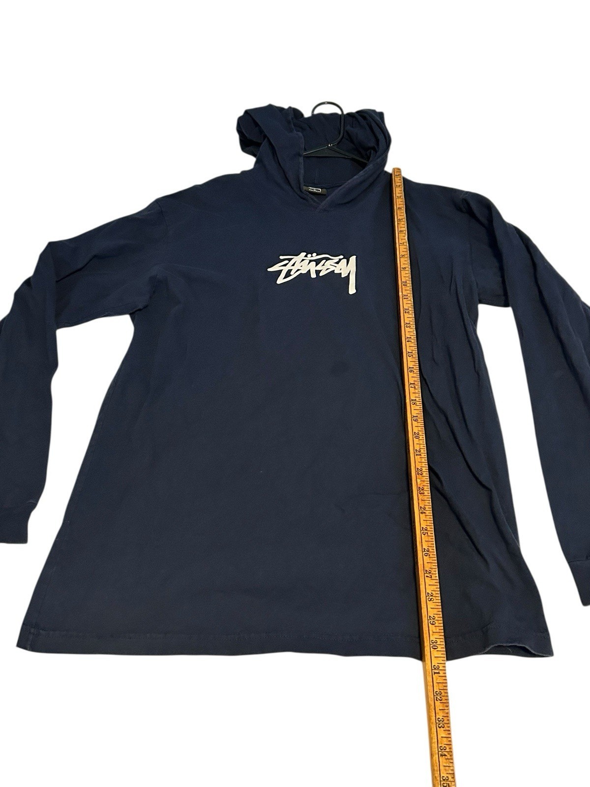 - Stussy Basic Logo Hoodie Mens XL Navy Blue Hooded Long Sleeve Cotton Shirt Y2K