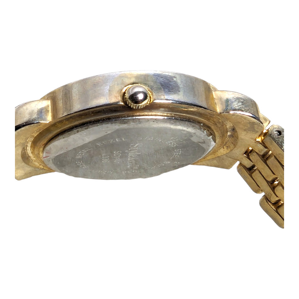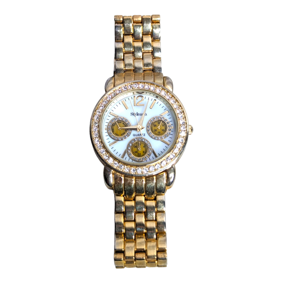 Style Co Womens Gold Tone Metal Faux Diamond Accented Wrist Watch Jewelry