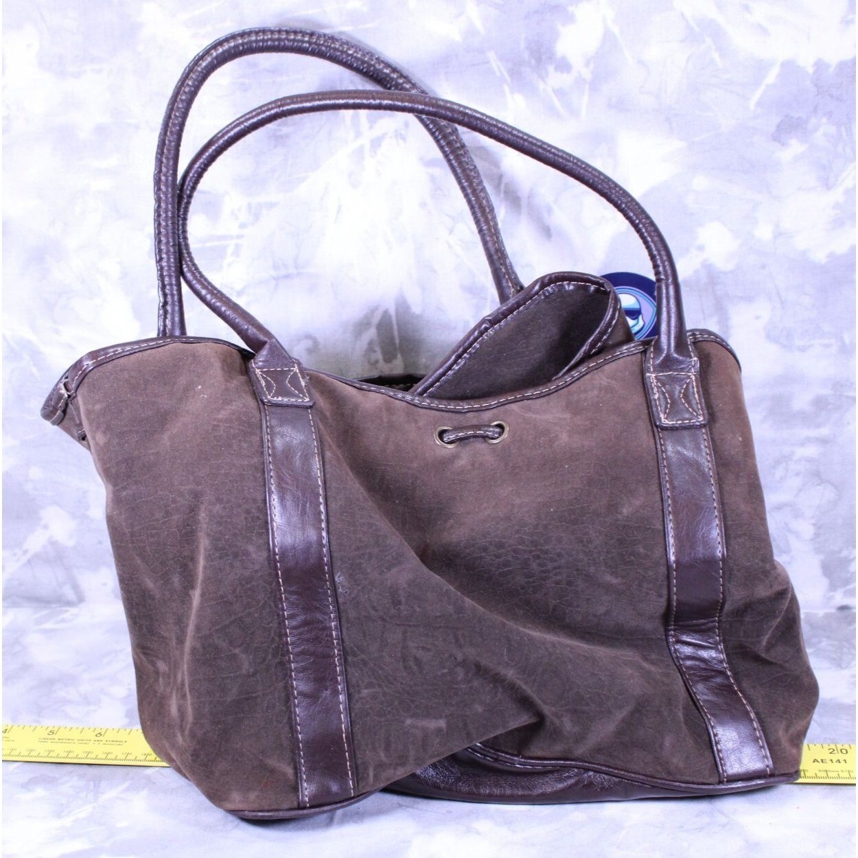 Suede Handbag Stitched Detail Cinch Closure Lined Purse