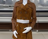 - Suede Leather Trench Coat Womens M Belted Double Breasted Chestnut Brown Iman