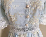 This dress features a regular sleeve style and a sophisticated A-line silhouette. The fabric is made of premium polyester and lace, giving it a tasteful and elegant look. It is suitable for the summer season and has a mid-calf length for a classy and exclusive feel. The dress is adorned with a button decoration on the square collar, adding a touch of high fashion. The waistline is natural, and the closure type is a zipper. Made in mainland China, this dress is a perfect combination of comfort and style.